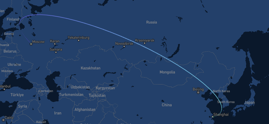 Проложим оптимальный маршрут для доставки груза между Москвой и Шанхаем.